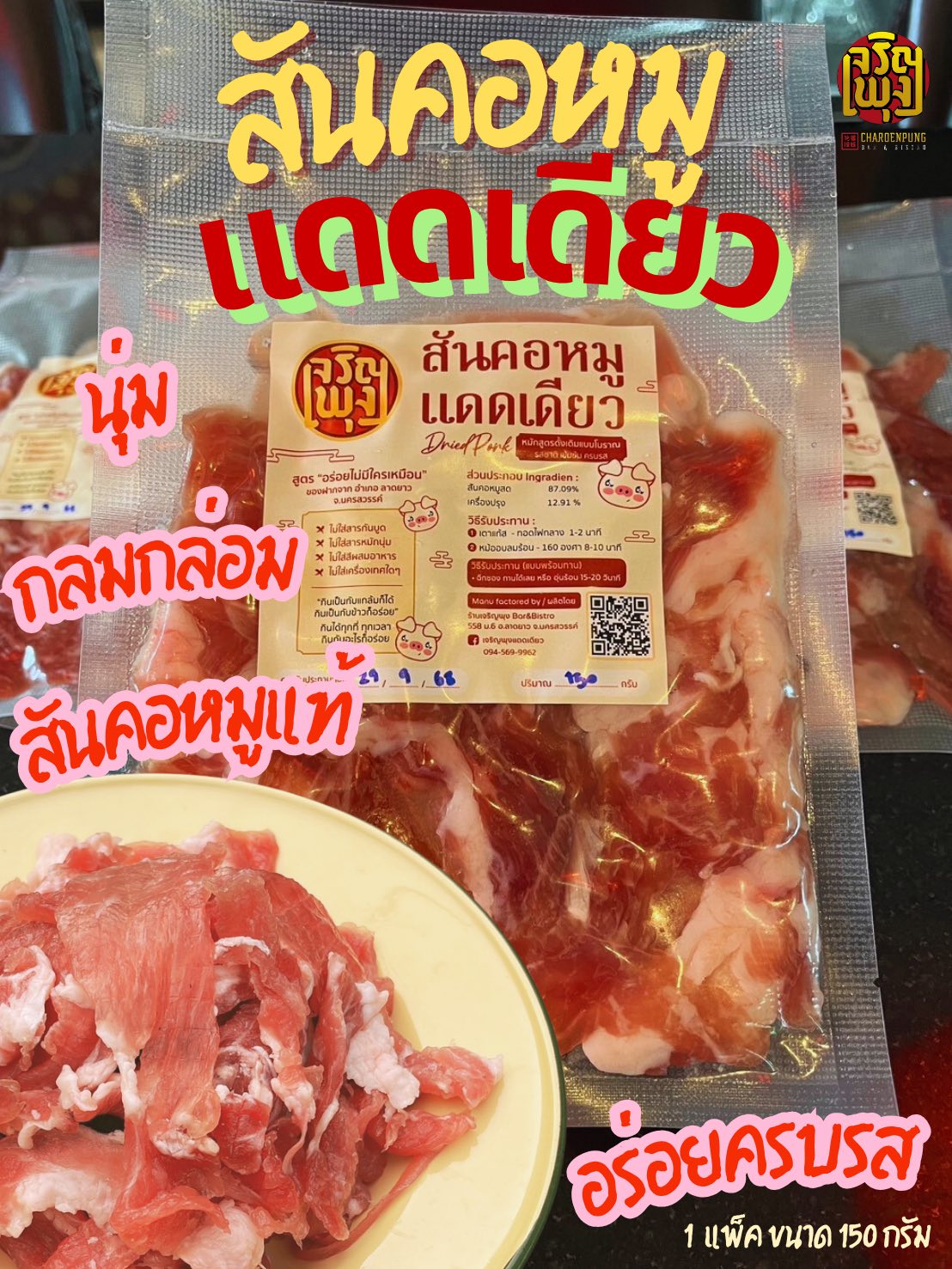 “สันคอหมูแดดเดียว”ใครชอบทานหมูแดดเดียว สันคอแท้ๆ มันแทรกแบบนี้ ไม่เหนียว ไม่แข็ง รสชาติ หวานเค็ม ครบรส